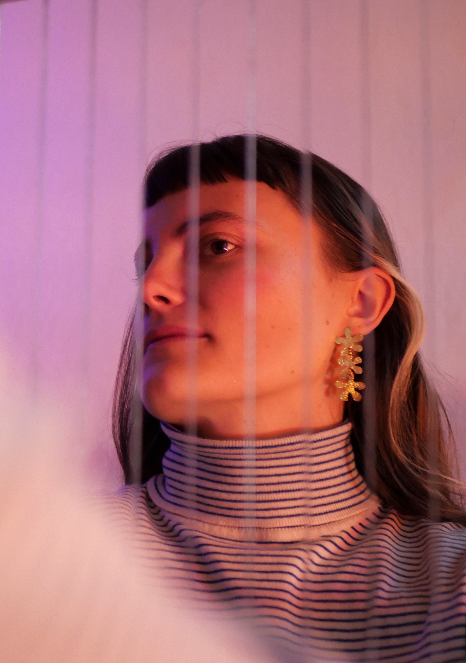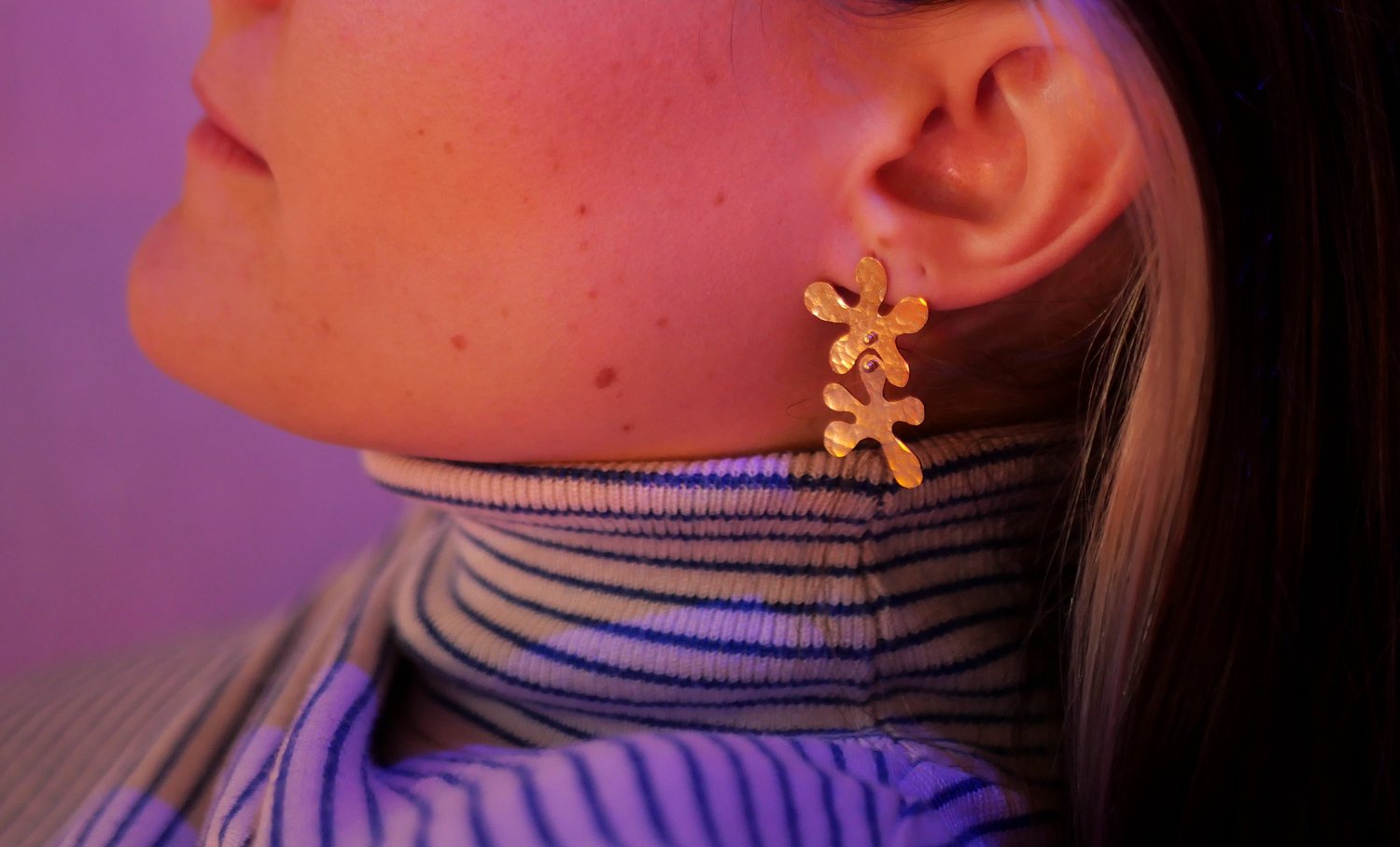 Cette paire est asymétrique, d'un coté des fleurs dansent en duo pendant que sur l'autre oreille elles se dont en trio