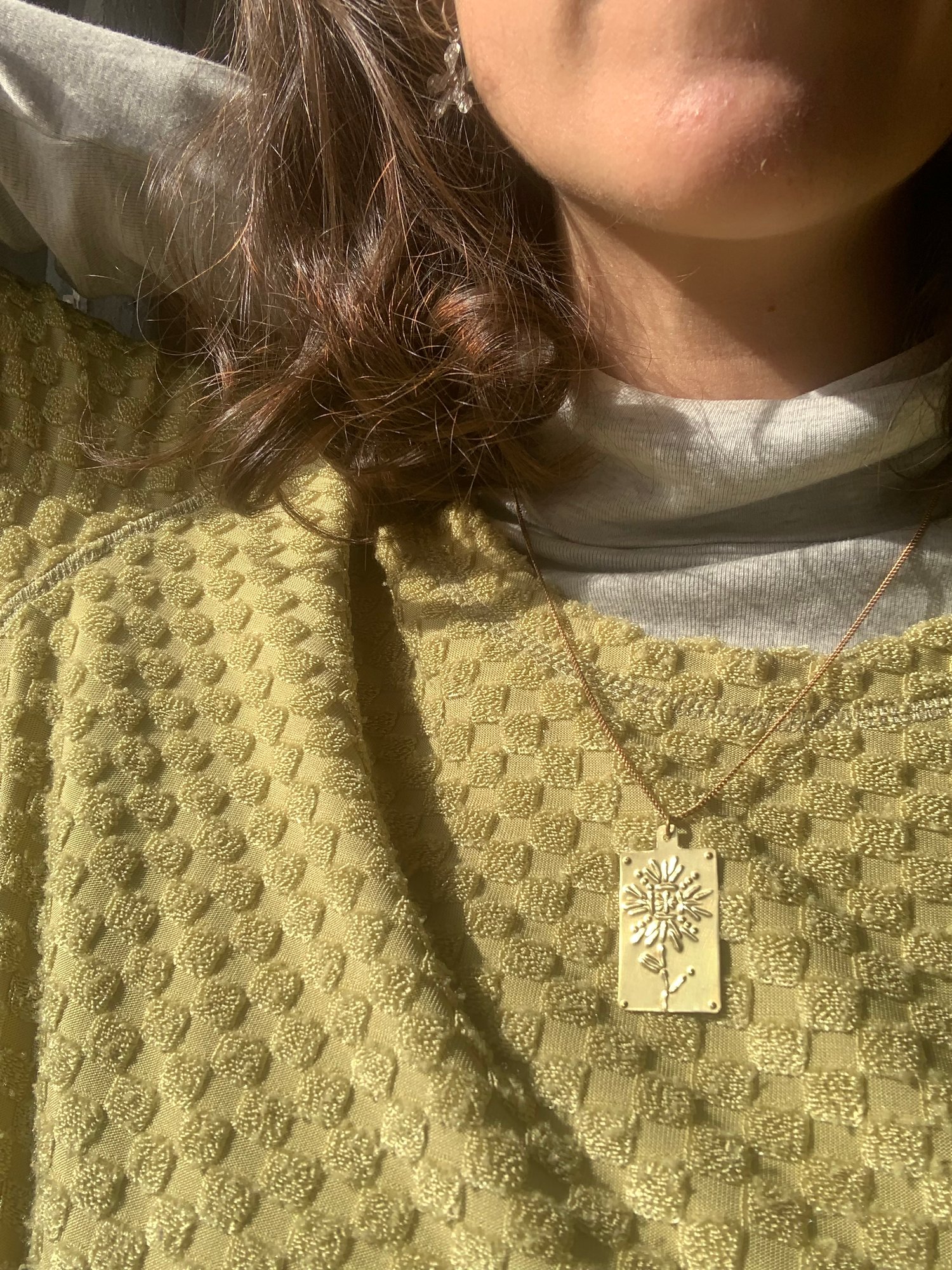 Comme un herbier, une fleur qui aurait séchée sur cette plaque.