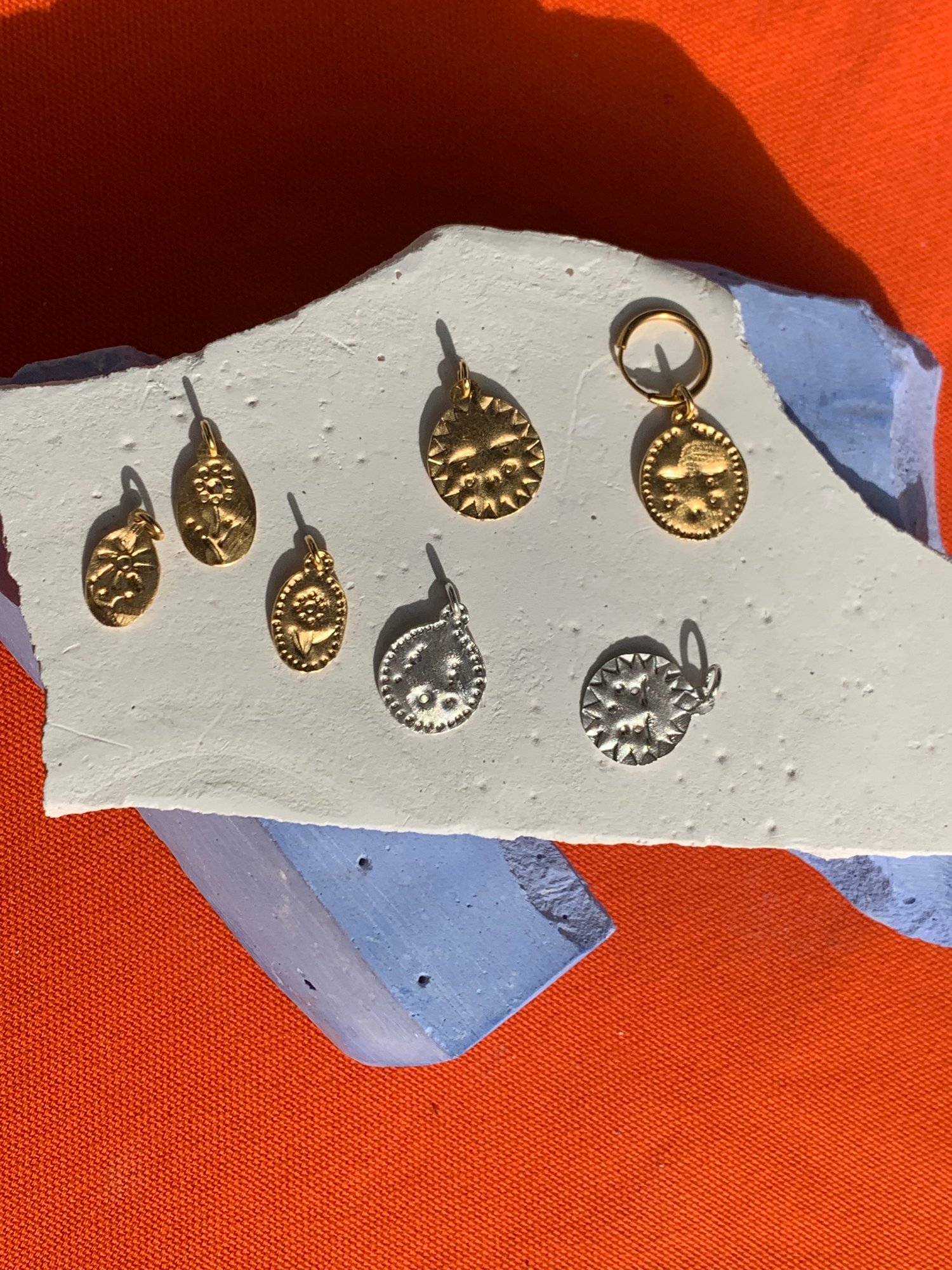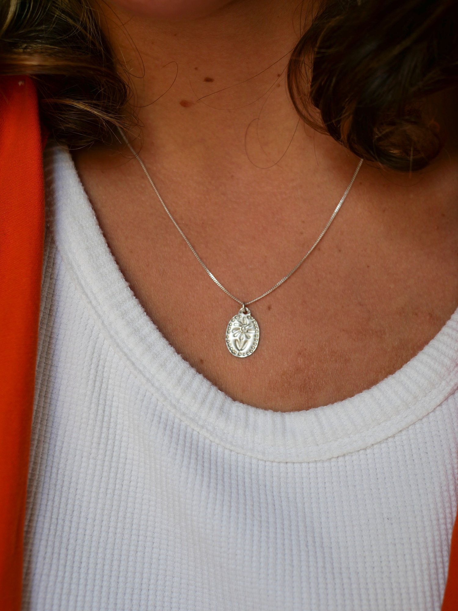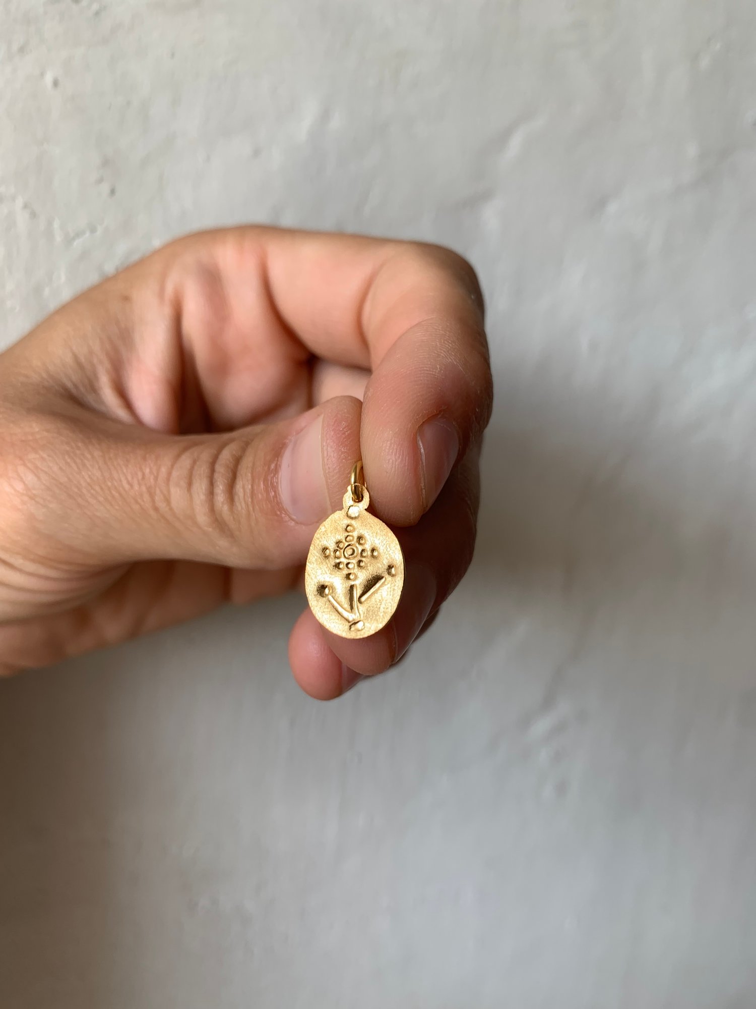 Médaille fleur, elle peut de porter sur une chaîne autour du cou ou sur un anneaux comme une boucle d’oreille