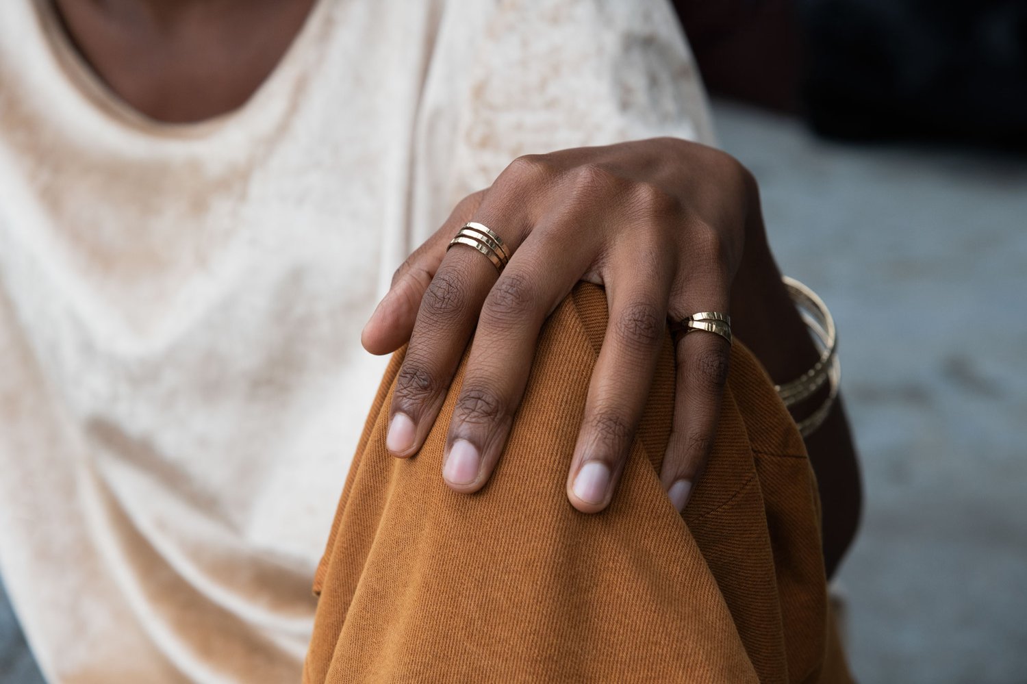Réalisée à la main en laiton, disponible plaqué or ou argent.